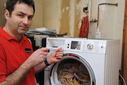 • Wenn möglich, schließen Sie Ihre Waschmaschine an den Warmwasseranschluss an. So muss die Maschine das Wasser nicht elektrisch erhitzen. Wir übernehmen das gerne für Sie.